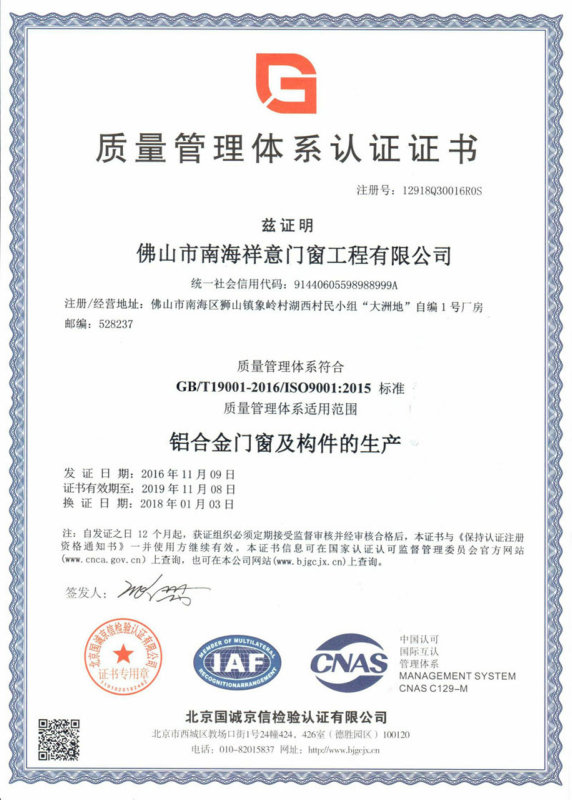 廣東祥意門窗工程有限公司是一家專注鋁合金門窗工程及門窗加工、制作的優(yōu)質企業。公司憑著精湛的技術服務和優(yōu)良的售后服務,已成功完成多個優(yōu)質項目。